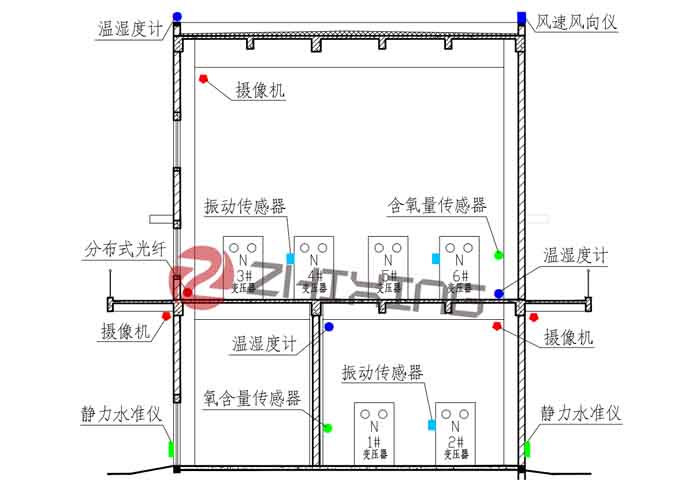 變電站主要監(jiān)測(cè)內(nèi)容:基礎(chǔ)沉降、設(shè)備振動(dòng)、環(huán)境溫濕度、含氧量、風(fēng)速風(fēng)向、視頻周界防護(hù)